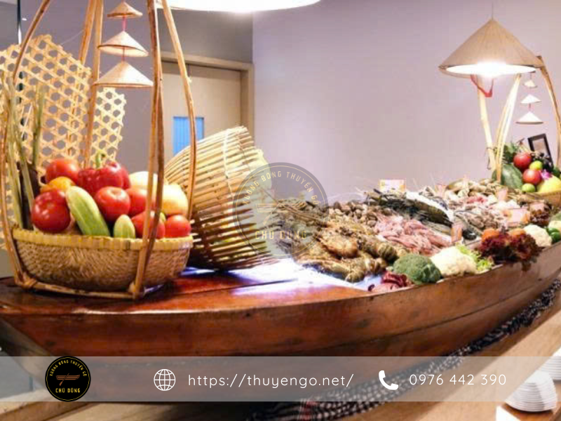 Vì sao thuyền gỗ trang trí thức ăn được ưa chuộng nhiều?